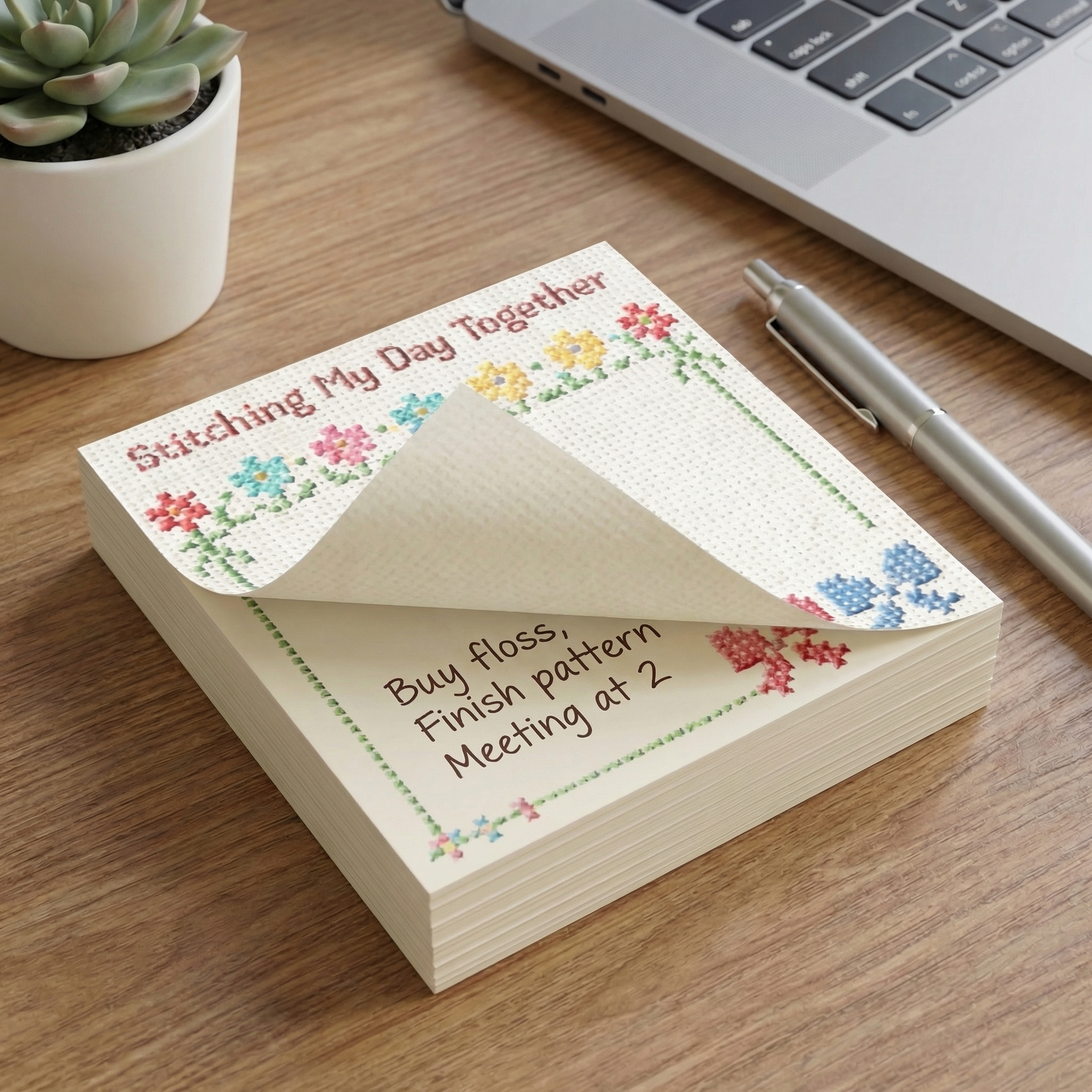 Cross Stitch Sticky Note Pad – Decorative Floral Craft Room Stationery